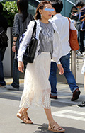 レースをレイヤードしたようなデザインのロングスカートも多かっ...