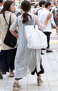 前開きのロングワンピースを羽織りのように着るスタイルが増えて...