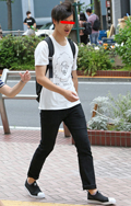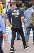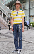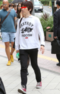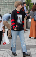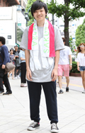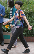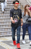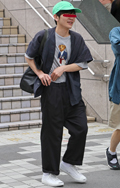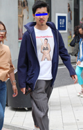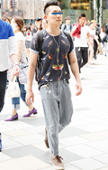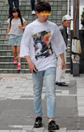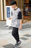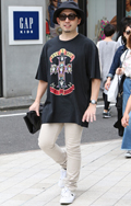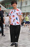 広い袖口とインパクトあるフォトプリントが目を引いた彼。脱ノー...