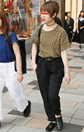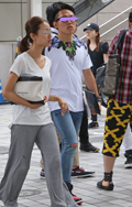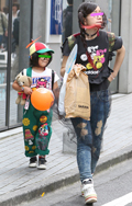 キッチュ過ぎるファッションで目を引いた旅行客と思われる母子。...