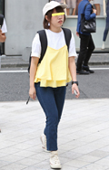 白Tシャツにキャミソールをレイヤードした着こなしが主流。これ...