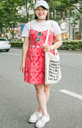 ノスタルジックな柄のキャミソールがファッションのポイントに。...