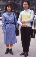 ミニスカート、ショートパンツなどひざ上15センチ以上のミニボトムとの組み合わせ。