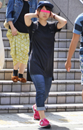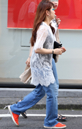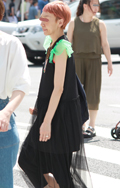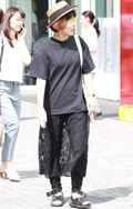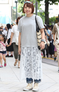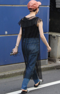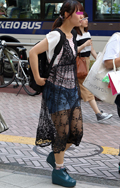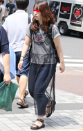 原宿で多かったのは、シースルーアイテムにパンツをプラスしたコ...