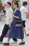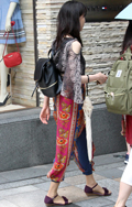 裾に薄手の布が縫い付けられた変形パンツがおもしろい。インパク...