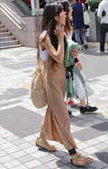 サイドスリットの入ったワンピースが増えている。インナーにスキ...