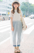 透け素材のスカートからショートパンツをのぞかせるスタイルが急...
