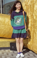 セーター、ジャケット、ワンピースなど上半身に金糸、ゴールドプリントなど光り物が付いているもの。