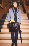 ミニスカート、ショートパンツなどひざ上15センチ以上のミニボトムとの組み合わせ。