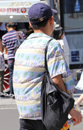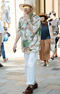 男性に古着と思われる柄シャツが増えている。こちらはアメリカ西...