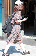 クラッシックカーがプリントされたワンピースを小物でマニッシュ...