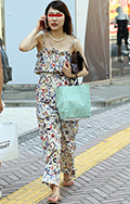 オリエンタルな柄のオールインワン。昨年は黒やネイビーの無地が...