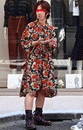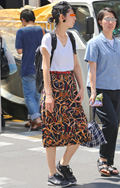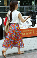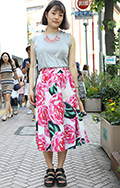 鮮やかなバラ柄のフレアスカート。ノームコアブームの反動からか...