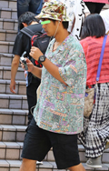 男性にはアロハシャツや和柄のシャツが着用されていた。着物をリ...
