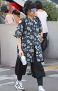 あえて男性用のビッグサイズのアロハシャツを羽織り、ユニセック...