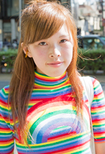 キスマイのメンバーが7人で、それに合わせて7色のニットを着て来ました。これを見つけたときには、UNIFが好きだし「ちょうどいいじゃん!」ってなりました。虹だし。ヘソ出しはライブ会場にいっぱいいるけれど、この服ならかぶらないなって思って。もしヘソ出しが少なくて会場で目立っちゃっても、別に気にしません。ヘソ出しは結構するので、見られてもいいように腹筋を1日50〜100回くらいはやっています。小さい頃からよく出しています。涼しいし、ライブにぴったり。でも暑い(笑)