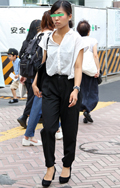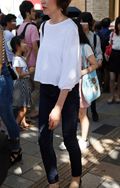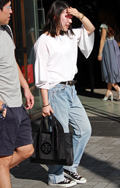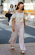 9月に入っても一定数みられたオフショルダートップス。彼女のよ...
