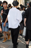 デザインシャツは男性にも着用されていた。こちらはドロップショ...