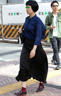 バルーンスリーブがエスニックな印象のブラウス。ミニスカートに...
