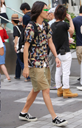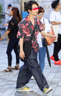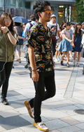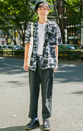 スケーター風のファッションにもアロハシャツは欠かせない。大人...