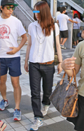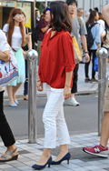 「隠れたトレンド」のひとつでもある、トップスの裾の前をイン、...