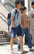 アロハシャツを白Tシャツと重ねる着こなしが多かった。前ボタン...