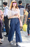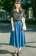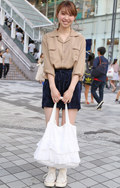 トップスの裾はタックインせずにあえて出しっぱなし。オープンカ...