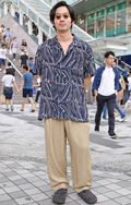 オープンカラー(開襟)というディテール以上にインパクト大の柄...