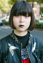 このMA-1は和柄が目を引いたので買いました。今年の春くらいに日本っぽいアイテムが集めたくなったんです。その頃は周りで日本っぽいものを集めている人が少なくて。でもあるとき、「あ、わたし日本人だ」と思ったんです。今日は気温的にちょうどよかったかし、中のニットも黒だとなんだかぼやけてしまう気がして、立体感のあるものを着たかったんです。量産的な感じのものが好きじゃないのと、個性的な感じが好きなので買いました。