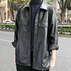 シャツコート風のデザインが珍しいレザーアウターを発見。肩のプ...