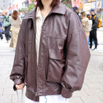 黒に比べてさらに古着っぽさが際立つ茶系のレザーブルゾン。きれ...