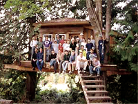 そうなると、もう、何がなんでもツリーハウス!と、むさぼるようにツリーハウス関係の本を読みまくりました。そこで、WAT(World Association of Treehouse)という組織があることを知ったんです。本部はシアトル。しかも、その代表のピーター・ネルソン氏が近々日本に来るというではありませんか。主催は小学館の『BE PAL』という雑誌。なんでも、栃木の茂木に約1万坪の敷地を借り切って、野外生活を楽しむためのフリースペースをオープンするらしく、そのオープニングイベントで来日するという。これはチャンスだ!と、さっそく編集部に電話をかけ、原宿でツリーハウスのカフェをやってて、語学もできるので、なんとかそのイベントで使ってやってくれないか、と交渉したんですが、ぜんぜん取り合ってくれなくて。きちんとお金を払って一般参加者として来場して下さいの一点張り。それでもめげずに何度も電話をしていたら、ある日、連絡が来た。突然通訳さんが来れなくなったので来てくれないか、というのです。もちろん、即OK! 本人と会ったら、興味の対象が同じなので、誰よりも親しくなるじゃないですか。意気投合し、原宿の「カフェ・オ・ゴーゴー」も見に来てくれて、「おまえはWATの日本代表だ!」ということになったんです(笑)。