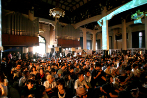 その前に、お寺でアンビエント音楽を聴きたいね、っていう話から企画した音楽イベント「誰そ彼(たそがれ)」というのをここ光明寺でやってるんですけど、けっこういい雰囲気で集客も多くなってきたので、じゃあ築地本願寺でもやろうっていうことになり、築地本願寺で年に1回、「他力本願で行こう!」っていうイベントも企画しました。無事に昨年9月に2回目を実施しました。おかげさまで事前の告知もたくさん取れて集客もばっちり。大好評でした。