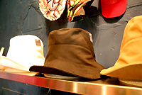 さて、冒頭でも述べたその“話題の帽子”とは、前回のreport でも紹介したオリジナル商品の「ピッコロ」。同商品は頭の部分が深い(長い)デザインになっているため、その部分を後ろや横に折るなどアレンジが可能で、さらに浅く被ったり深く被ったりと深さも自在。被り方によっては顔を深く隠すことができるこの帽子は、特に女優やタレント、ミュージシャンに愛用者が多かったが、ちょうど女優さんが買いに来ているところをお客さまが見て、口コミで話題となり、いつからか「女優帽」と呼ばれるようになったのだそうだ。するとあっという間にその噂が「出没!アド街ック天国」のスタッフに伝わったようで、番組内で「女優帽」の通称で紹介されたというわけだ。幣サイトの取材当日にも次々とOL層〜年配までの幅広いお客さまが訪れ、「ピッコロ」=「女優帽」を試着、購入していた。