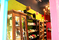 新店舗の内装は前店舗と同様、折原さん自身がデザインを担当。パープルピンクの重厚なアンティークの扉を開くと、赤と紺が基調のアーティスティックな空間が広がる。特に高い天井に吊られた大きなシャンデリアが印象的だが、新店舗はこのシャンデリアから全体のイメージを膨らませたのだそうだ。また、折原さんは旅先での出会いからインスピレーションを得ることが多く、今回は“パリの下町”をイメージ。さらにそこに、ゴシックやエスニックのテイストが混在した、無国籍でジャンルにとらわれない空間になっている。