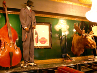 店内は、黒とゴールドのインテリアで統一。ブランドイメージに合わせて1920〜30年代のアール・デコやアール・ヌーヴォーなどをイメージした内装になっている。床は磨き上げられた大理石で、中央にある大きな鹿の剥製とワイン色のソファが目をひく。コンセプトは「ゴージャスと下品のスレスレのライン」(中谷さん)。