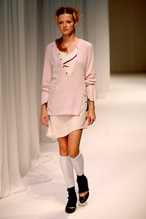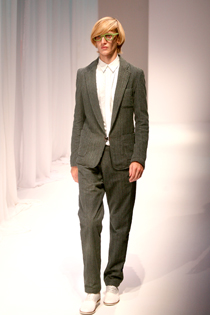 今回4回目のランウエイでのショーを行ったtiny diosaur(タイニー ダイナソー)。イッセイミヤケ、sunao kuwahara、LAD MUSICIANを経て独立したデザイナーの山本尚美さんは、嶺川貴子さんとバンドも組んでいるそうだ。