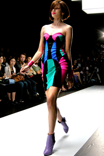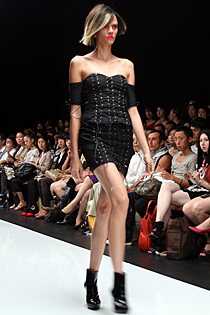 今回の東京コレクションでは「フィジカル」「体」「骨格」「細胞」など、“体”に関連するテーマで作品を発表するメゾンが多いが、同メゾンはよりヌーディに、女の人の光と陰で“体”を表現。シャープで強い90年代的な女性像を提案していた。