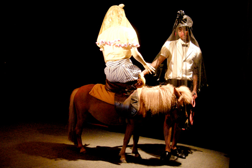 と、場面が変わり、幕をスクリーンに見立ててデッサンを描くフィルムが投影され和やかな雰囲気が、徐々に騒がしくなり、爆音とともにモデルたちが右往左往する。ラストは、真っ赤なライトを浴びた男の子と女の子、マネキン、そしてミニチュアポニーが立ちつくす。舞台に配された段ボールで作った炎の小道具から察すると、ひょっとして落城されたのか?