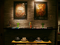 打ちっぱなしのコンクリートがモダンな印象のビルの1階に位置する同店。店舗面積は30坪で、店内はほの暗く独特の雰囲気を放っている。スカルモチーフのインテリアや、ブラジルで買い付けたアンティークの絵画や什器等が並ぶ。