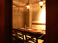 内装デザインは、シューズショップ「CLONE(クローン)」や「NAMBA CITY(なんばシティ)」の公共スペースを手掛けた、株式会社エイトインクの三橋宇征さん。木のカウンターや岩で仕切られたキッチン、床には大理石のタイルが敷き詰められており、自然のものを多く取り入れた温かみのあるデザインとなっている。また、ちょうどいい明るさのアンティークの照明や、特注の木製テーブル、肘掛け付きのイスといった什器も心地良い雰囲気を演出。スペースを取るなど飲食店では敬遠されがちな肘掛けイスだが、ゆったりとくつろいでほしいという思いからあえて採用したそうだ。面積は25坪。席数はテーブル席22席、カウンター席5席、テラス席4席、個室1室。
