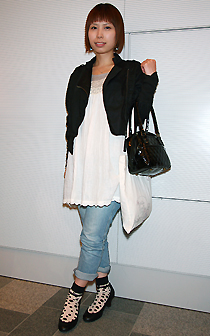 ファッションで目立ったのはワンピース。花柄やホワイト〜ベージュでふんわりと女の子らしいシルエットのワンピースに、黒ジャケットやグレーのカーディガンを合わせてやや大人っぽく着こなしたスタイルが多かった。全体の色使いは控えめで上品な着こなしが主流ではあるが、バッグや靴などの小物でデザイン性の高いものを取り入れ華やかさをプラスしていたのが『InRed』的だ。一方、関係者には“コマザワンヌ”のようにかごバッグやトートバッグなど、小物でカジュアルダウンする上級カジュアルが多かった。