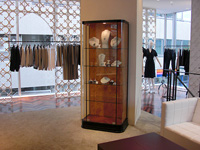 平日は周辺で働く女性や、隣接する郵便局やコンビニに訪れる人、青山劇場の観客などが来店し、買い上げ率は80%と高く、ワンピースやジャケットなど、スタイリングのセット買いが多いという。今回の移転をきっかけに、カタログ掲載商品とは別に比較的安価で着回しのきく、カットソーやスカート、パンツなどトレンドデザインのオリジナル商品も販売しており、買い上げ率を牽引している。バッグやアクセサリーなどの小物類はセレクトで展開。また、ジュエリーリフォームのサービスも提供している。クラスアップ感を求める30代後半から40代が中心で、他のブランドにはないサービスとして喜ばれている。