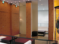 白を基調にしたファサードが特徴的な1階は、パティオをイメージしたというカジュアルな雰囲気。広いフィッティングルームと大きなソファが設置された2階は落ち着いたサロンのような趣きになっている。