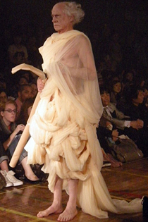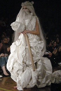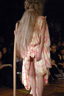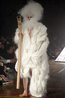 昨シーズンと同様、JFW公式スケジュールの大トリを飾ったのが、山縣良和さんによる「writtenafterwards(リトゥンアフターワーズ)」。09A/W Collectionでは「Graduate Fashion Show」と題し、披露したコレクションは、服飾、美術系学校の卒業制作の過程で出る廃材を再利用して作られた作品を発表。絶賛を浴びる一方で否定的な意見も多く、センセーションを巻き起こした。