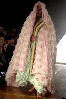 昨シーズンと同様、服作りの常識を覆すことでファッションとは何かを問いかけるコレクションになっていた。同時に、ファッションの原点に立ち返ることで、ファッション本来の魅力や文化としての可能性を改めて考えようという問題提起のようにも感じた。