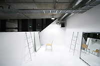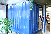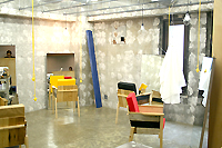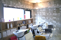 「実験室や秘密基地をイメージした」(カンタロウさん)という約30坪の店内は、コンクリート打ちっぱなしの空間、むき出しの照明コードやペンキが塗りかけの壁、搬送用コンテナを切断して作られたレセプションスペースなど、アトリエのような未完成なデザインが特徴。空間デザインは、「クリニエ」から引き続き内装デザイナーの柳原照弘さんが担当した。また同店では、ピンクやイエローの蛍光色の液体がユニークなオリジナルシャンプーや、オイル、エッセンスなどオリジナルのヘアケア製品も開発し、使用・販売を行っている。「あえて現在のオーガニックブームと反するテイストにした」(カンタロウさん)という遊び心が新鮮だ。