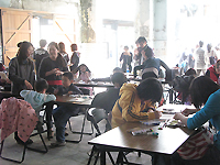 オーディエンスは、アート系学生から一般の親子連れまで多様な客層が集まったところが日本開催との違いで、お出かけやデートで気軽にアートイベントに遊びに来た、という趣だ。これは台湾の他の美術館を見て回った時にも感じた印象である。別の1棟を使用してカイカイキキの所属アーティスト・佐藤玲のワークショップが開催されていたが、ここにもアート系学生だけでなく、ファミリーが多く参加していた。