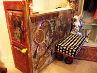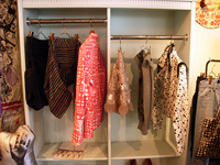 同店があるのは、原宿から渋谷へと続くキャットストリートを入った恩田商店街。中目黒や代官山よりも、平日でも人通りが多い原宿で物件を探した。白を基調とした店内は、2009年11月に改装したばかりで、テーマは「神隠し」。什器制作等を手掛けるクリエイティブユニット・magma(マグマ)が作った大きなロボットがあったり、カウンターをドアで装飾していたり、アパレルショップに無くていいものをあえて取り入れることで、洋服が空間の合間から見えるような独特の世界を作っている。