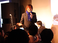 ゲストスピーカーには、「サードプレイス」にかかわる実践や研究を行っている人が招かれた。まず初めは、同志社大学の上田信行教授によるビートルズの‘Hello Goodbye(ハローグッバイ)’の熱唱でスタート。その後、『greenz.jp(グリーンズ)』編集長の鈴木菜央さんによる「green drinks(グリーンドリンクス)」活動の紹介、慶応大学の熊倉敬聡教授による「三田の家」プロジェクトの概説、リクルートエージェントの中村繁さんによる部署を越えた社員同士の交流の場を作る「ちゑや」の活動の説明など、ゲスト自身が行っている「サードプレイス」の実践が紹介された。また、カフェ文化研究家の飯田美樹さんによるカフェの歴史の説明や産業能率大学の長岡健教授からの「サードプレイス」概念についての問題提起など、学術的なプレゼンも行われた。